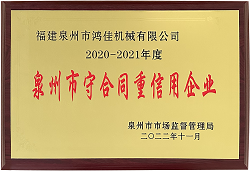 喜訊!鴻佳機(jī)械同時(shí)榮獲泉州市、南安市2020-2021年度“守合同重信用企業(yè)”榮譽(yù)稱號